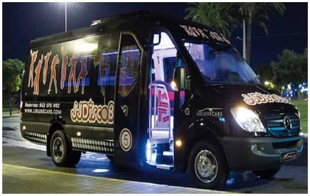 El disco bus preferido por las despedidas de solteros en Huelva. Para disfrutar de un traslado o de una fiesta a bordo, con posibilidad de actuación stripper o drag queen.